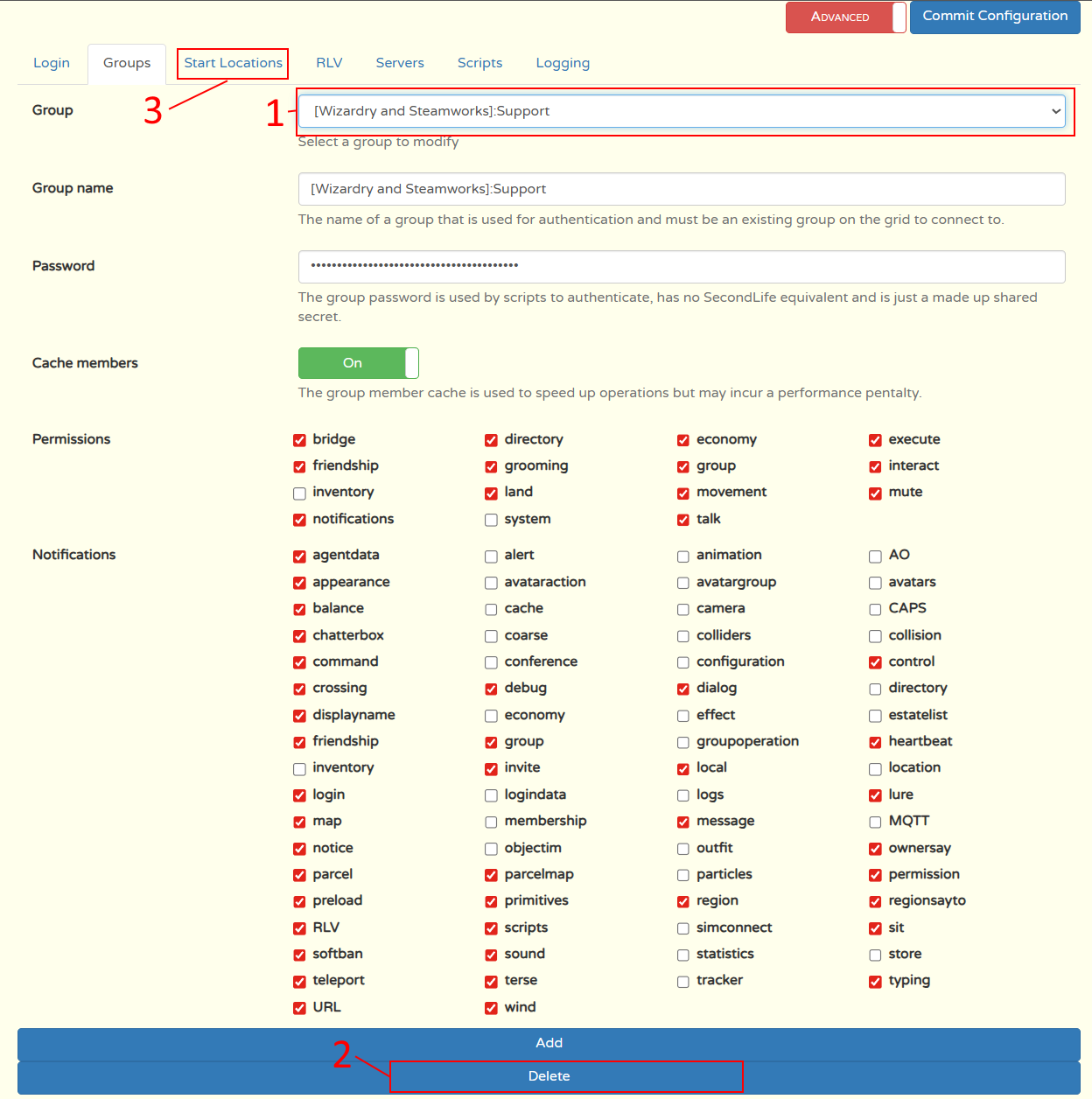 A Dialog will pop up, Click Close which will take you back to the configure screen. Click on Configure, click on groups, drop down the top selection to your group, you may find some of the boxes have unticked themselves, retick them and click on commit configuration.