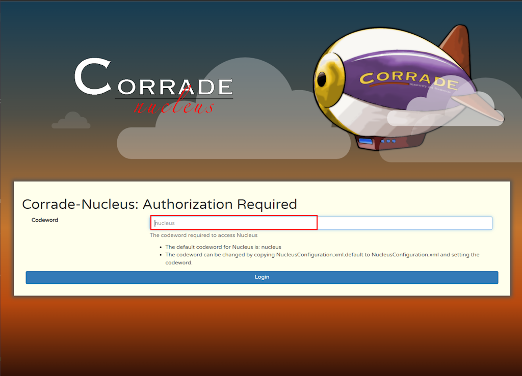 Enter the default password: nucleus and click login.