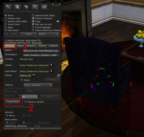 I will be Referencing the Firestorm Viewer. Other viewers may have other mechanisms to obtain an objects UUID or Key. You want your AvaDroid sit on a specific object (Chair, Pose Ball, Dance Ball), right click on the object, select edit.