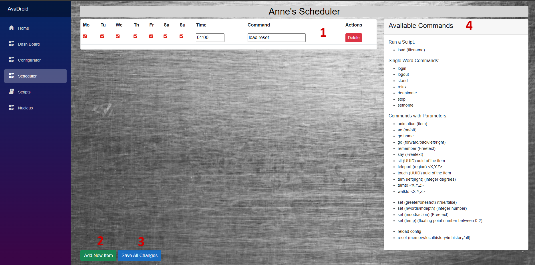 This page is used to schedule commands at a day and time in the timezone set in the compose.yml file (Default USA/Pacific time AKA SLT.
